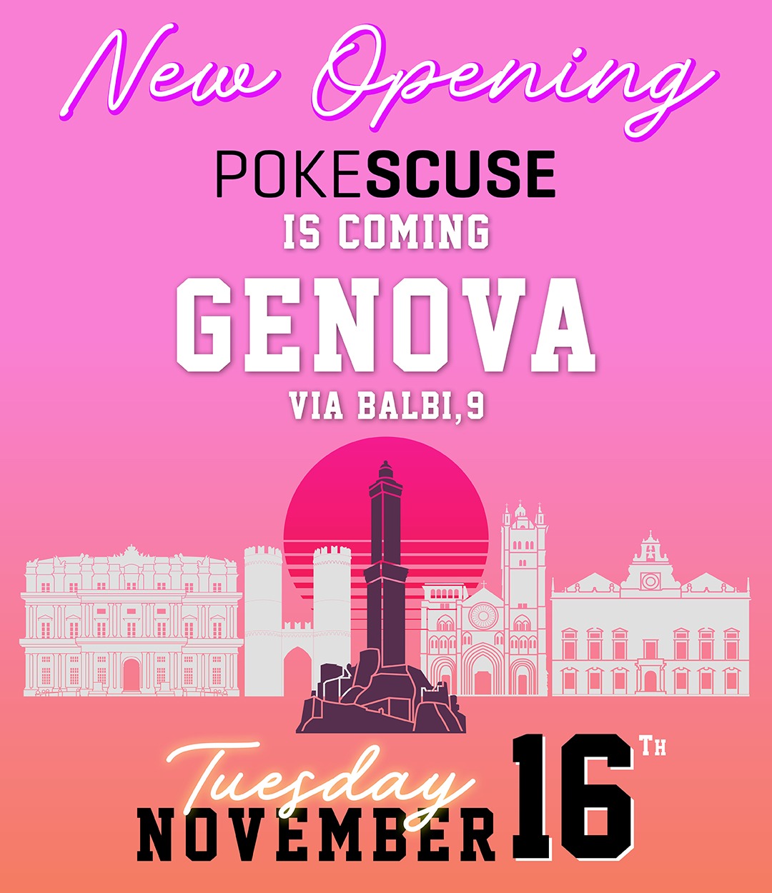 Martedì 16 Novembre 2021 Nuova apertura a Genova! Poke Scuse